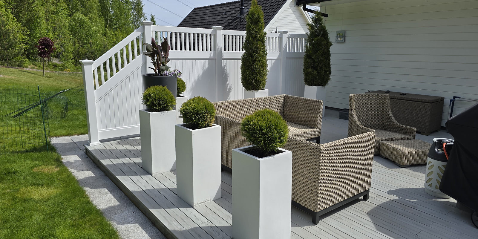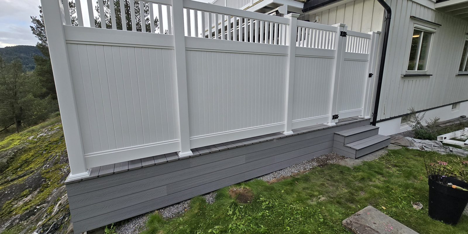 PVC levegger trenger ikke å beises eller males, noe som holder bruksverdien høy år etter år. Temperaturforskjeller mellom frost og varme vil ikke ha innvirkning på materialet. Det vil heller ikke få råte eller muggsopp, her er det bare å spyle av støv og sand alt etter hvor mye som legger seg. Her slipper du å bruke tid på å skrape og male rekkverket på nytt, PVC er et enkelt valg for deg som vil bruke ferie og fritid på noe annet!