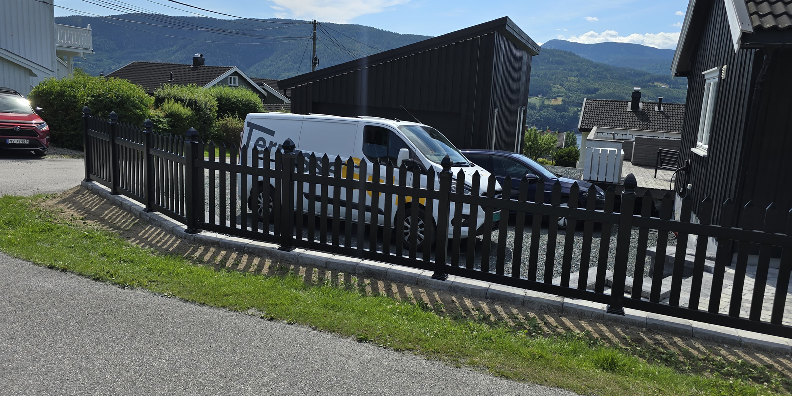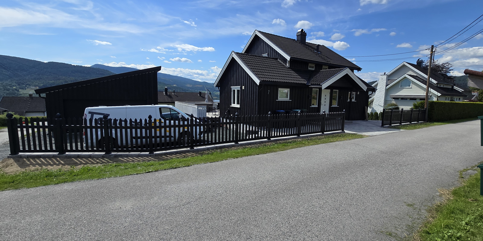 Svart vedlikeholdsfritt stakittgjerde i PVC