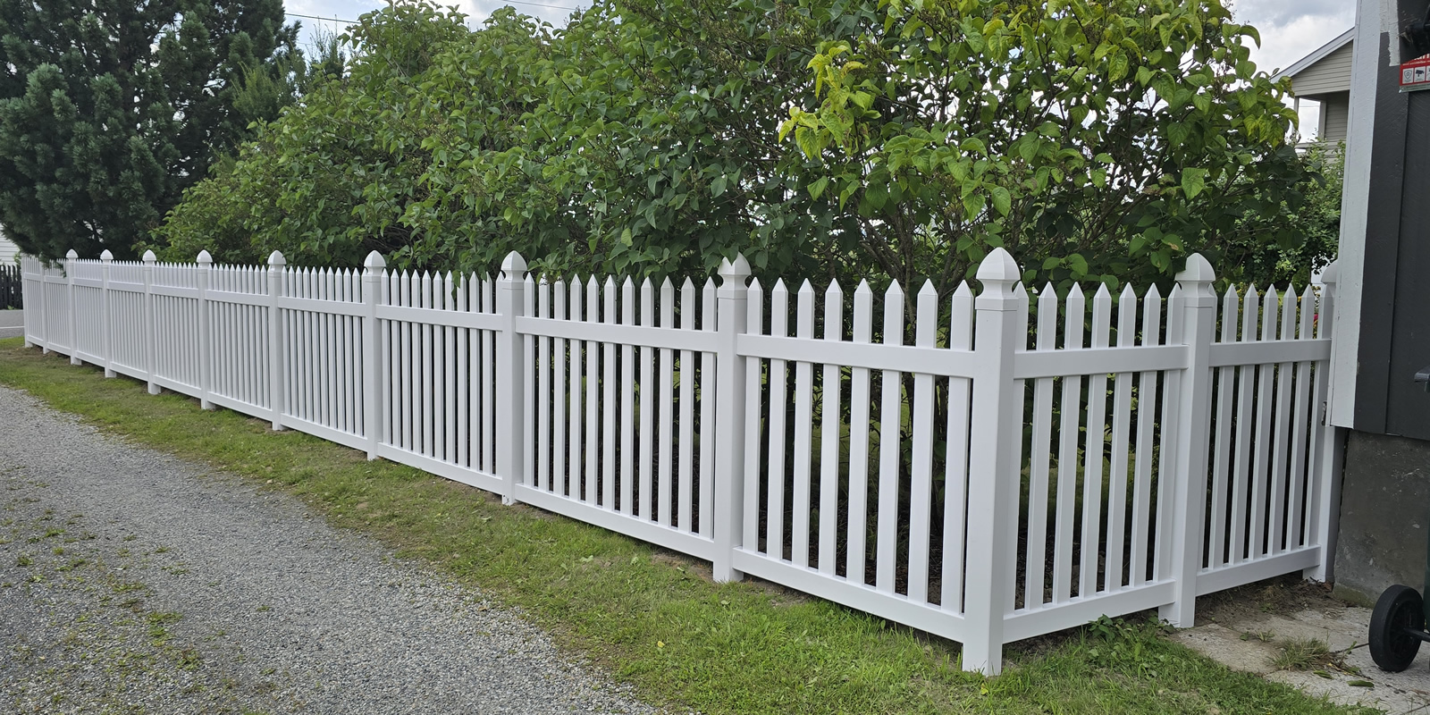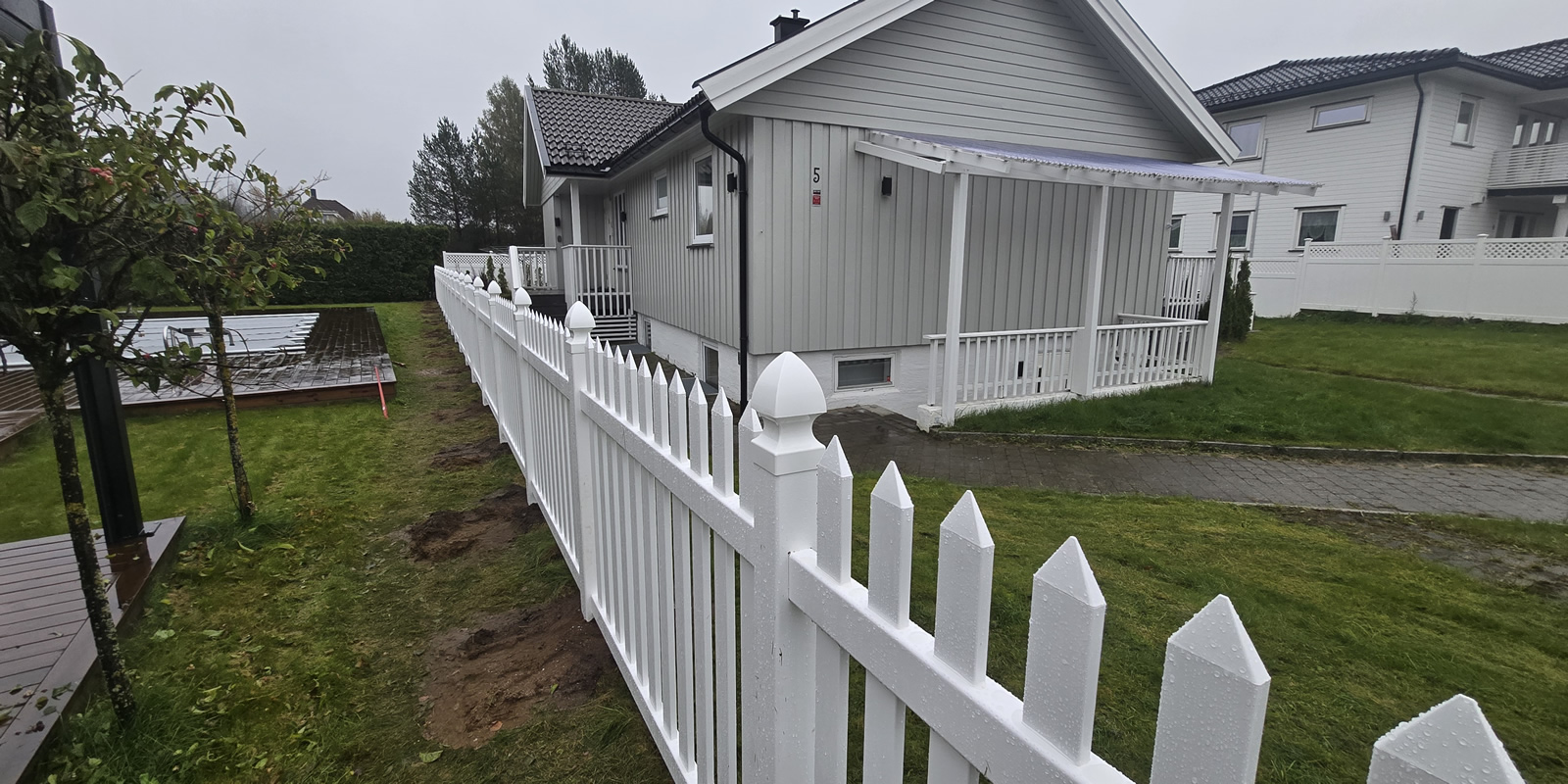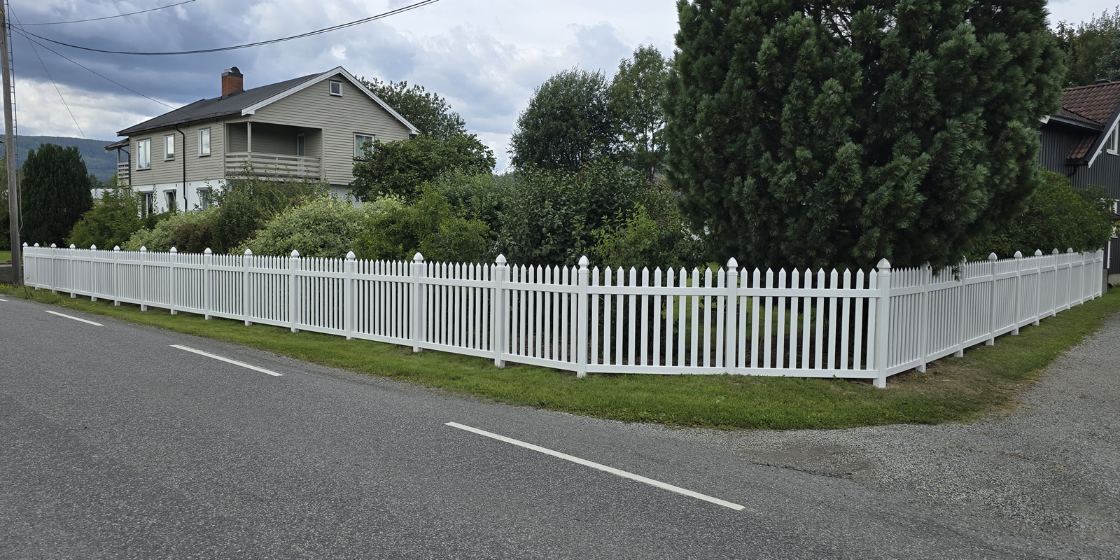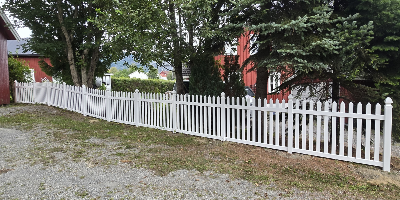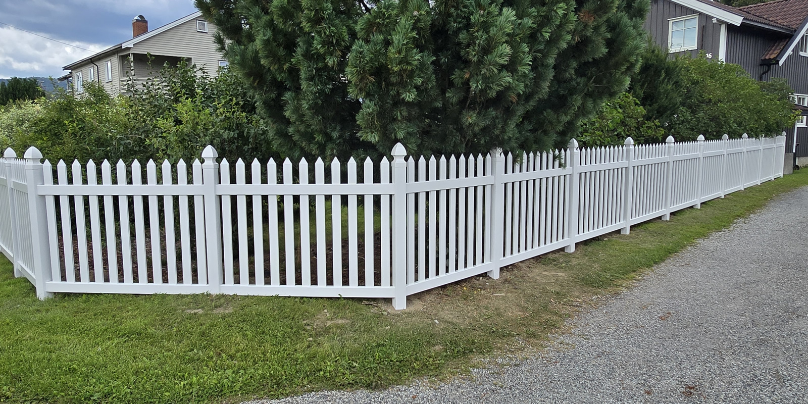 Vedlikeholdsfritt stakittgjerde i PVC til hage 120cm høyde